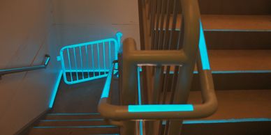 Photoluminescent epoxy coatings offer a low cost handrail application take only takes one coat to apply. Long lasting safety with low cost per linear foot application.